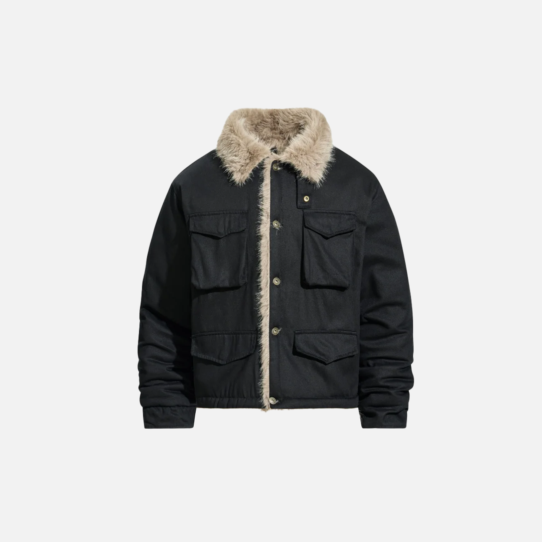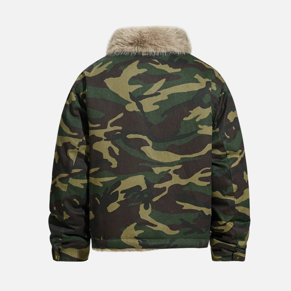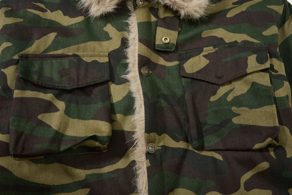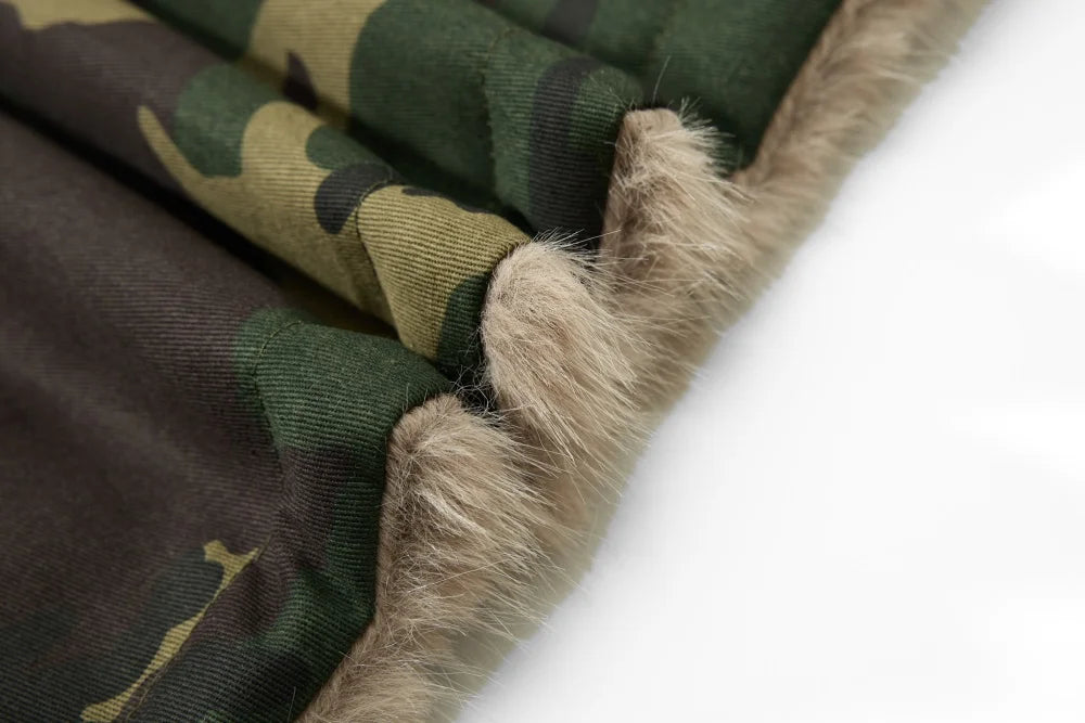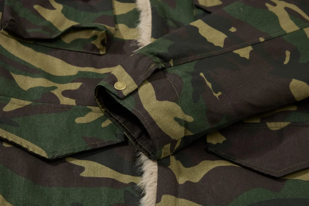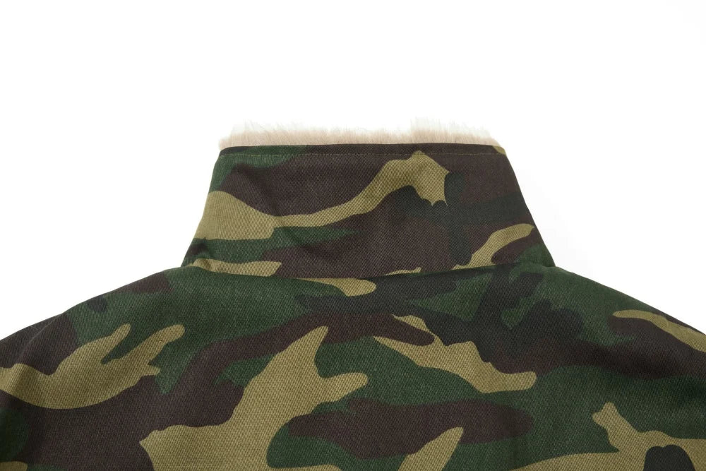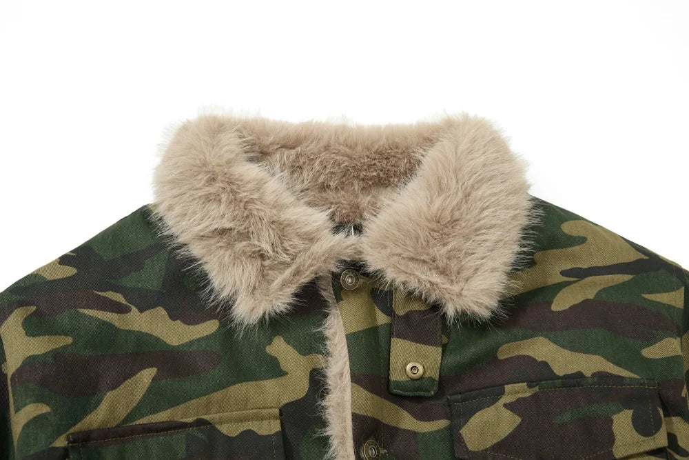 Camouflage Single Breasted Fur Collar Padded Jacket