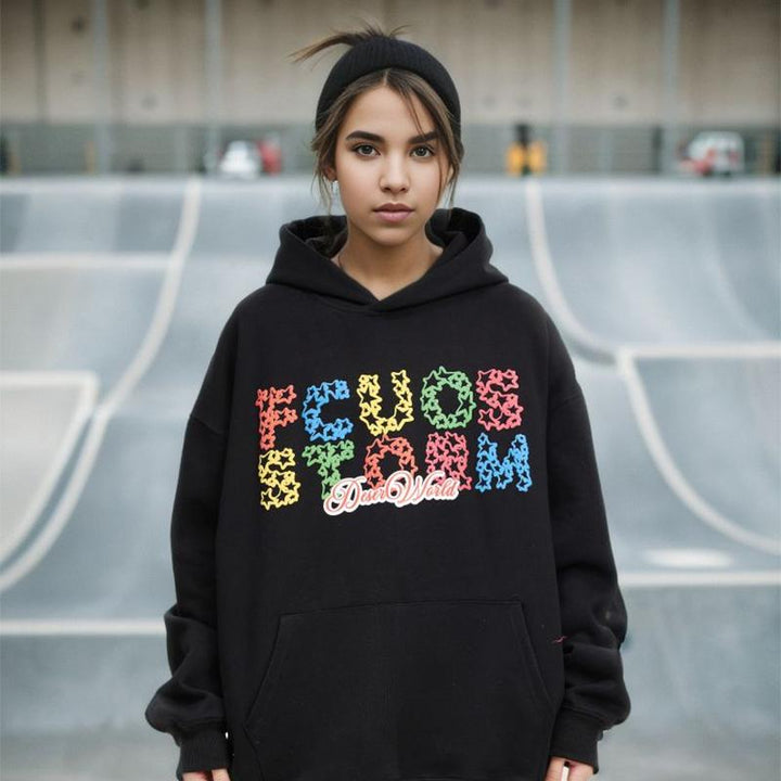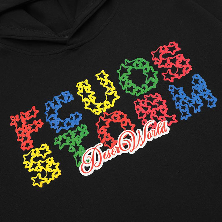 Premium cotton creates this hooded gem with standard thickness, plus a colorful letter-print star graphic – imagine and feel it!