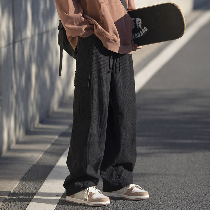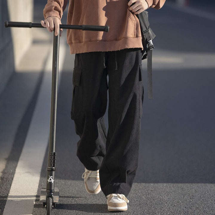 Elastic-waist Side Pockets Cargo Pants