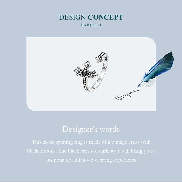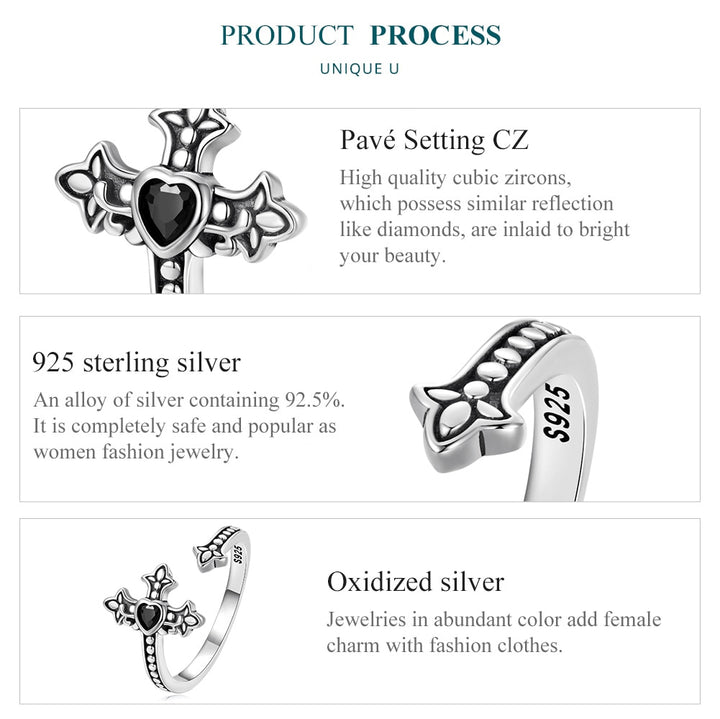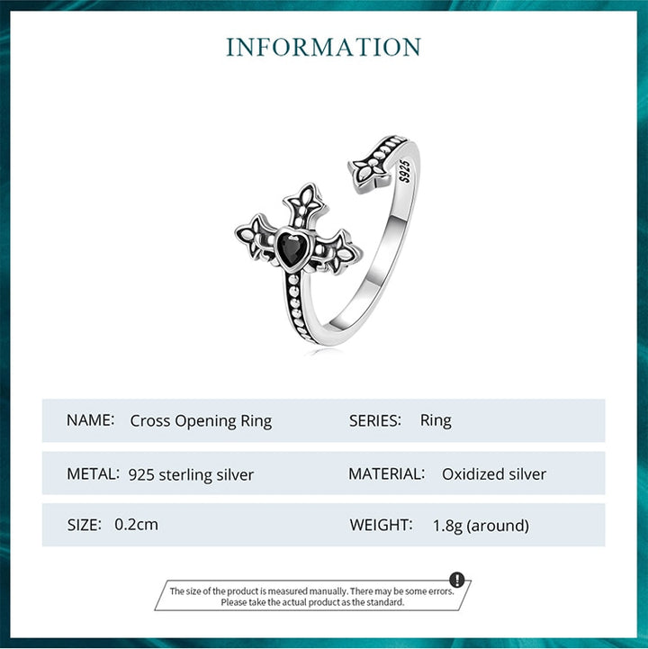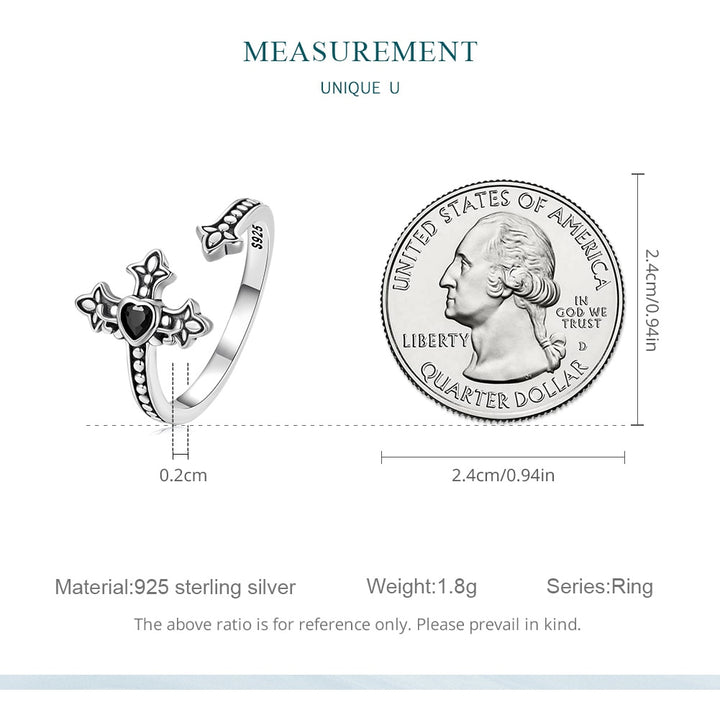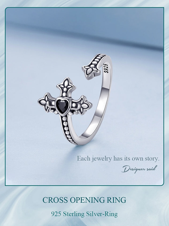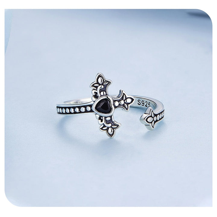 Faith Cross Black Zircon 925 Sterling Silver Ring