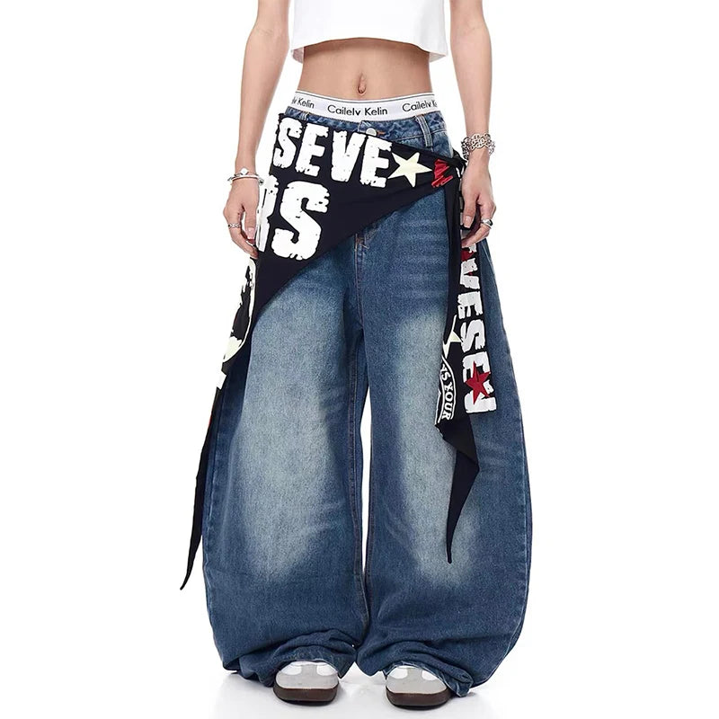 Flexible Streetwear Blue Casual Hip Hop Wide Leg Jeans