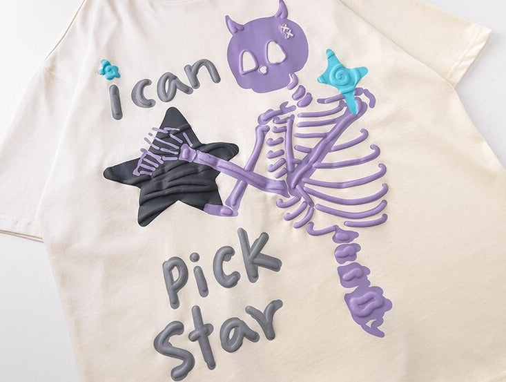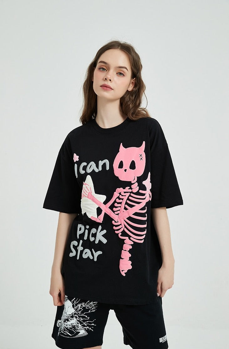 "I Can Pick Star" Devil Horn Skull T-shirt