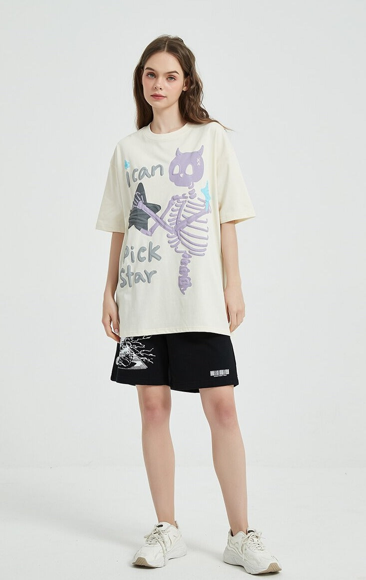 Rock the skulls in style with this devilishly cool O-Neck tee! Perfect for oversized fits and crafted with cottony goodness, you'll be sure to turn heads in this bad boy.