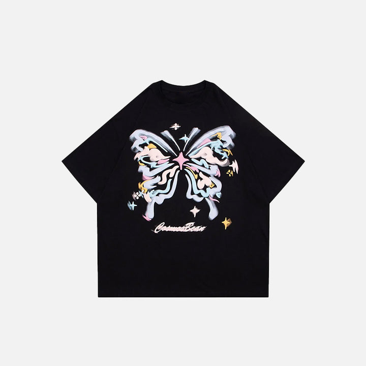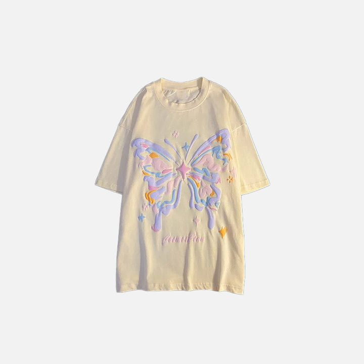 Feel the softness of the cotton and polyester blend and imagine how it will look on you with a loose fit! Take in the O-Neck collar that completes the stylish butterfly print oversized T-shirt.