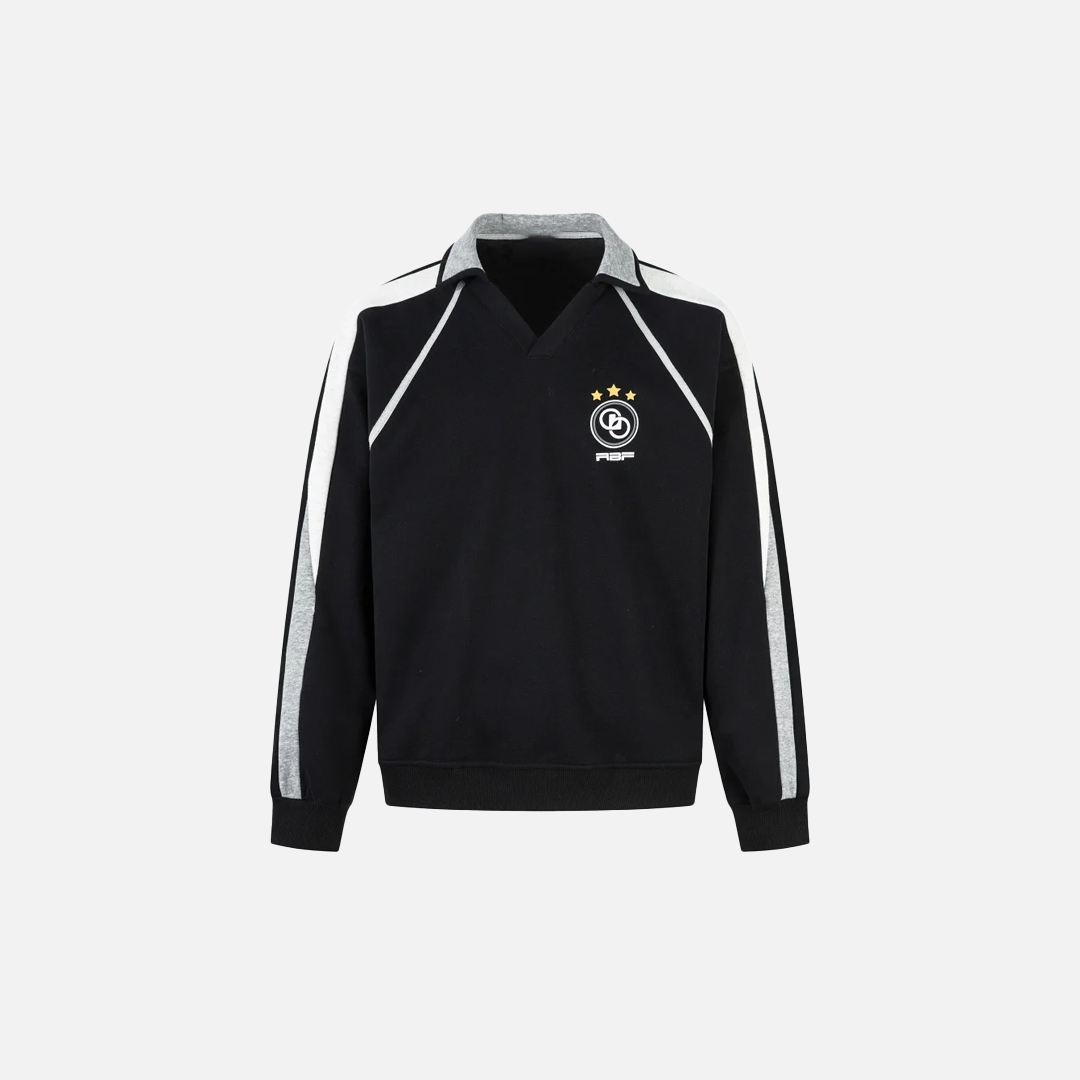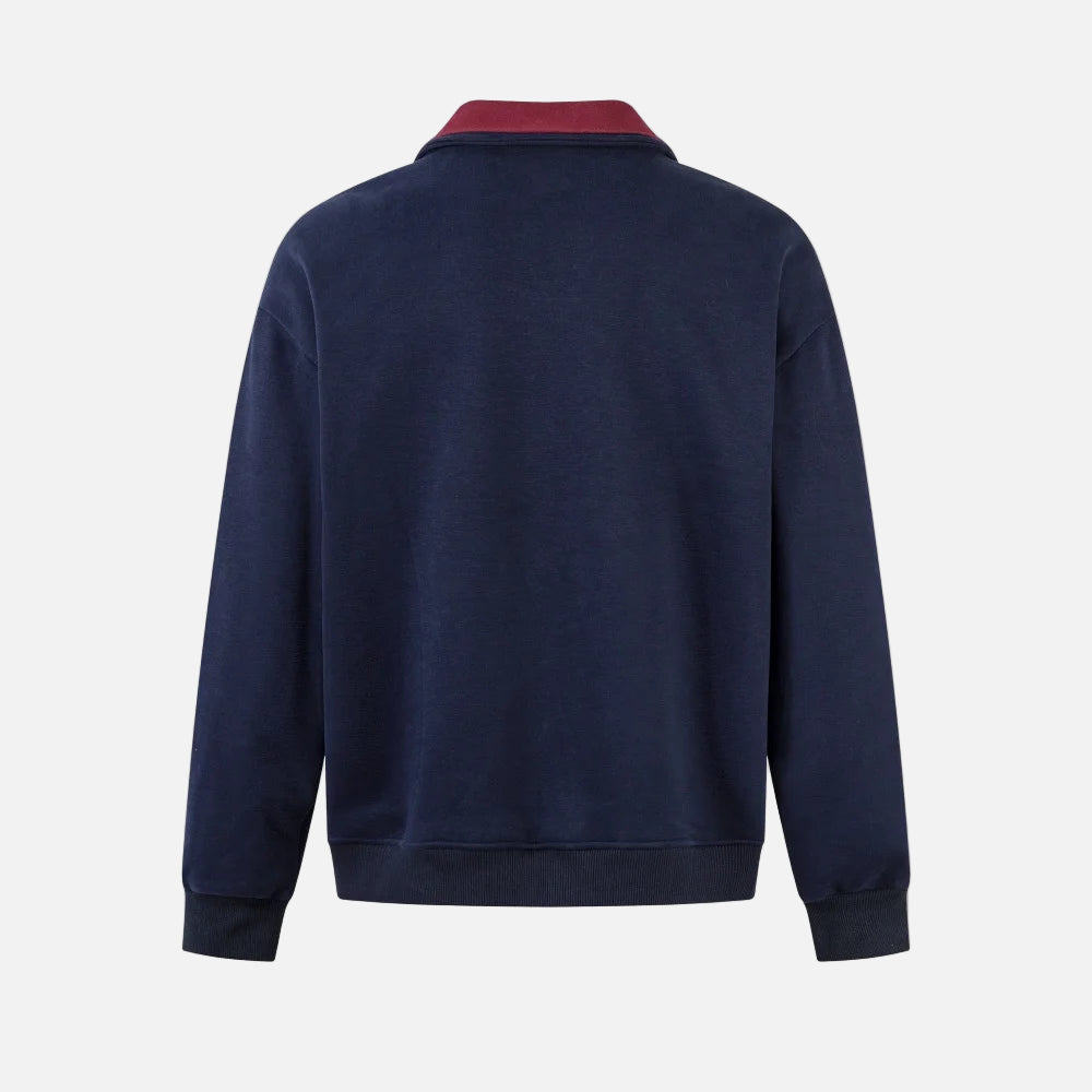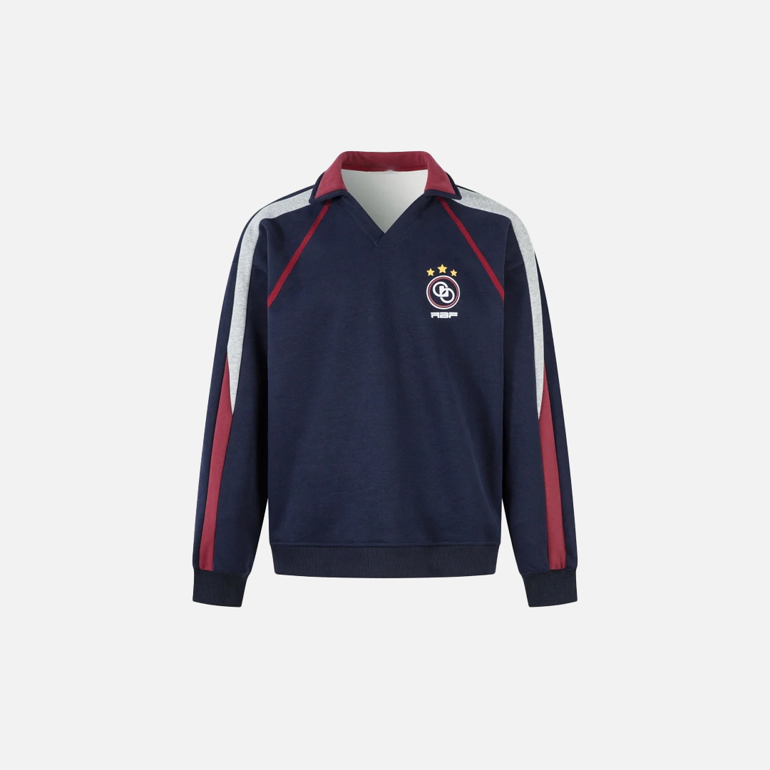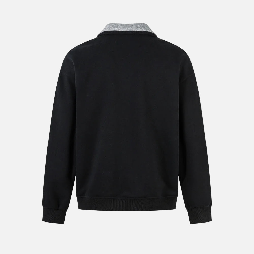 Paneled Contrast Print Fleece V-Neck Sweatshirt