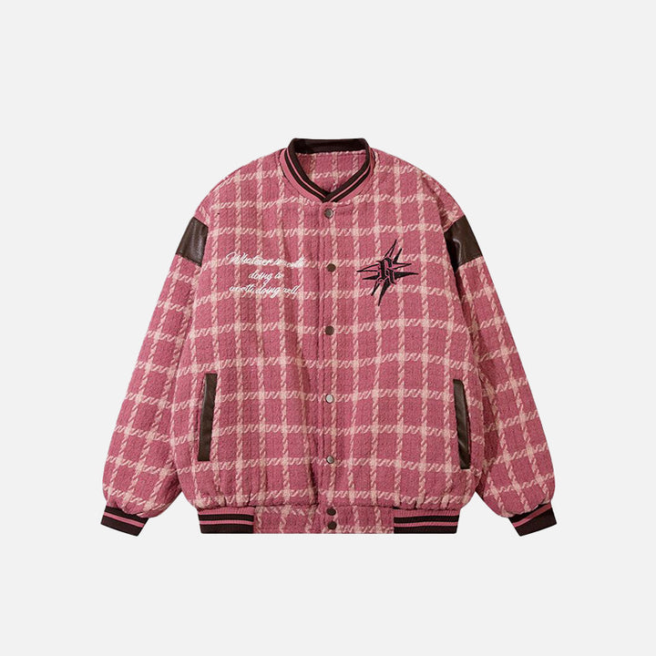 This soft acrylic Plaid Star Print Varsity Jacket, complete with an O-neck collar and standard thickness, will be sure to become a wardrobe favorite!