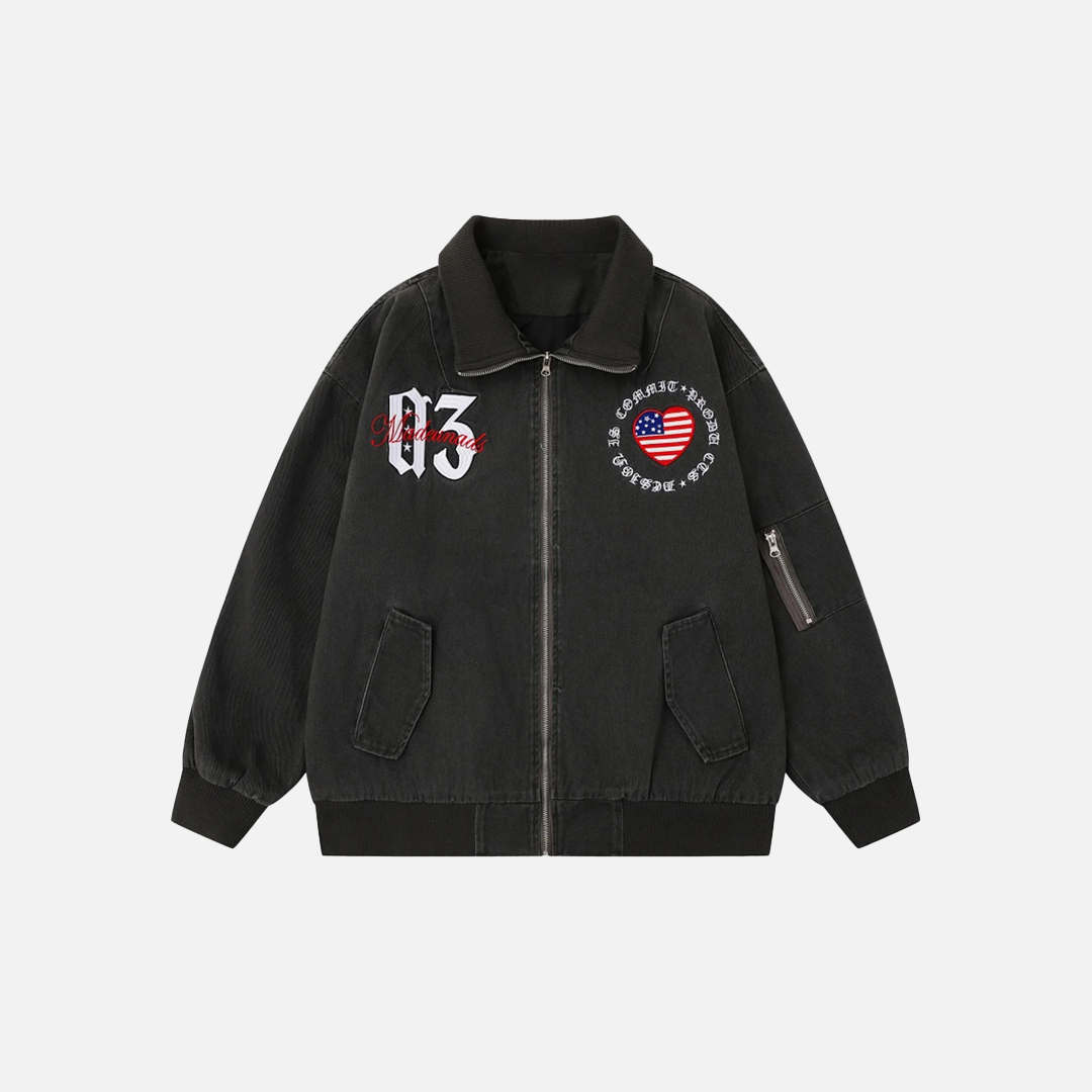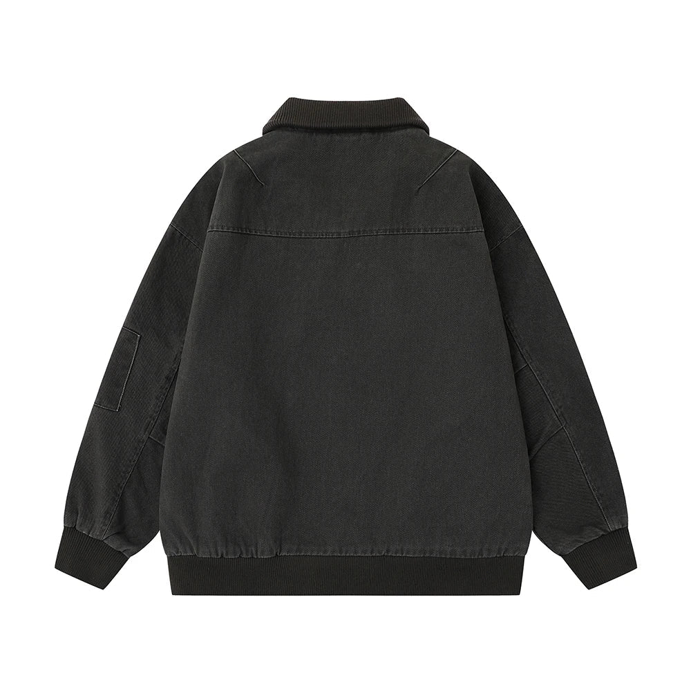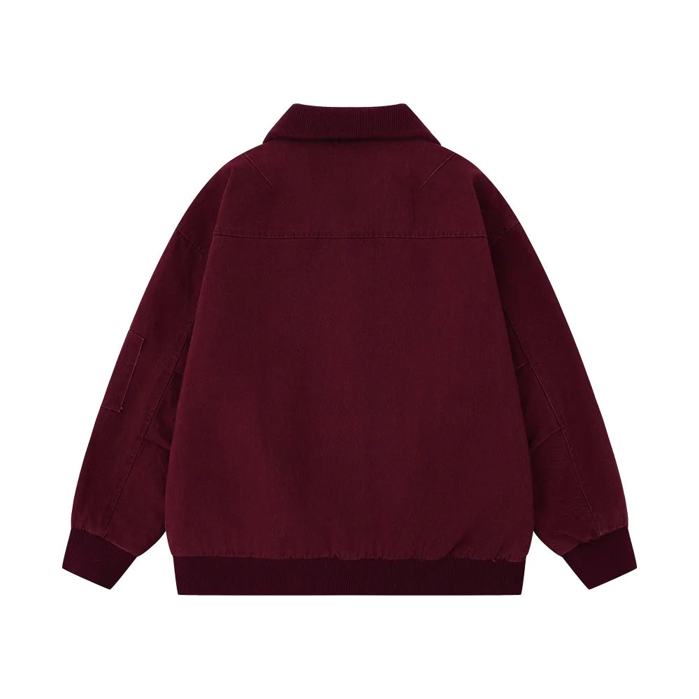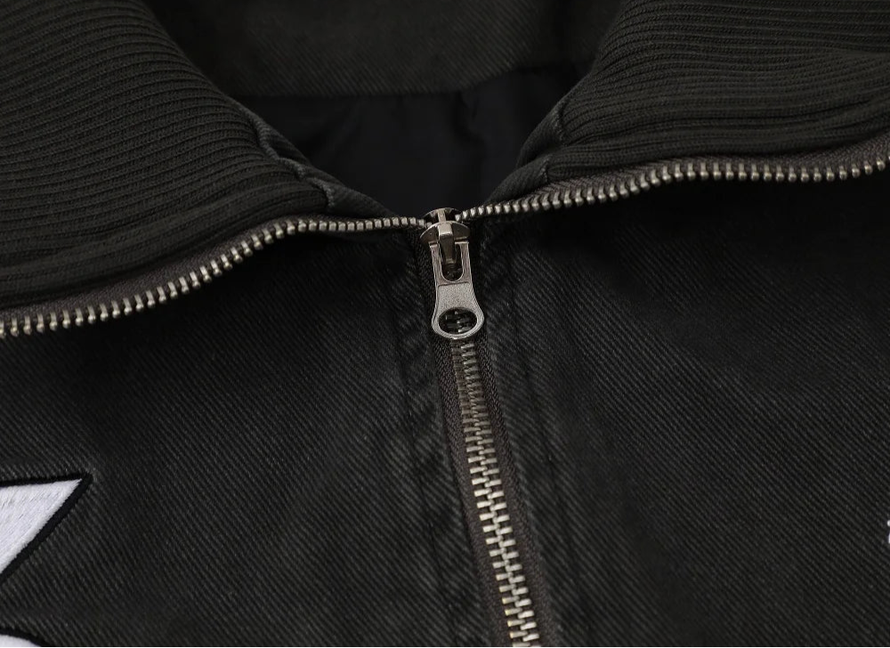 Plush Letter Embroidery Zipper Fly Cargo Puffer Jacket