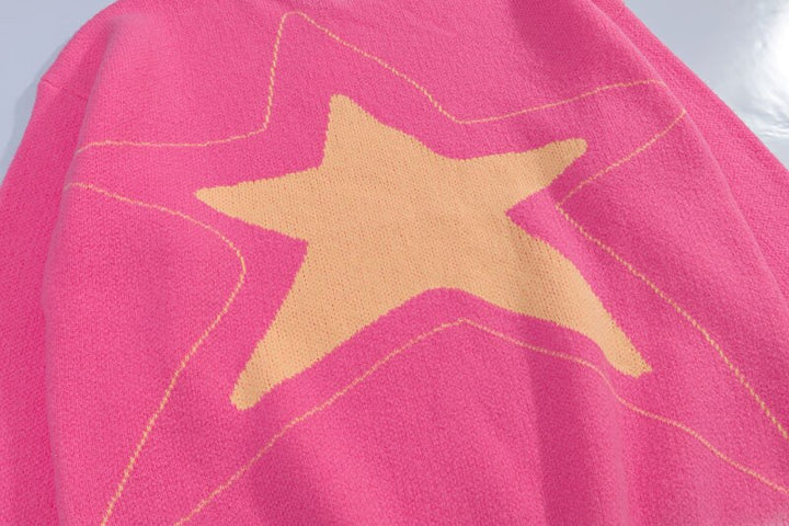 Stay warm in style with this Star Knitted Graphic Ripped Sweater! Crafted with Polyester and Acrylic, its O-Neck collar adds the perfect touch. The STANDARD thickness plus Cartoon and Standard Wool featuring Computer Knitting make it a must-have.