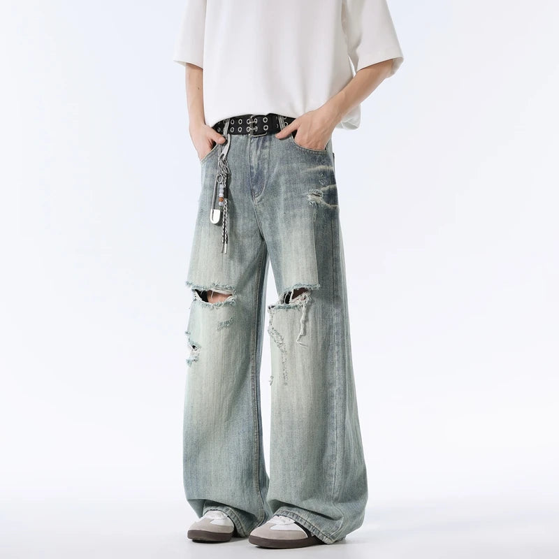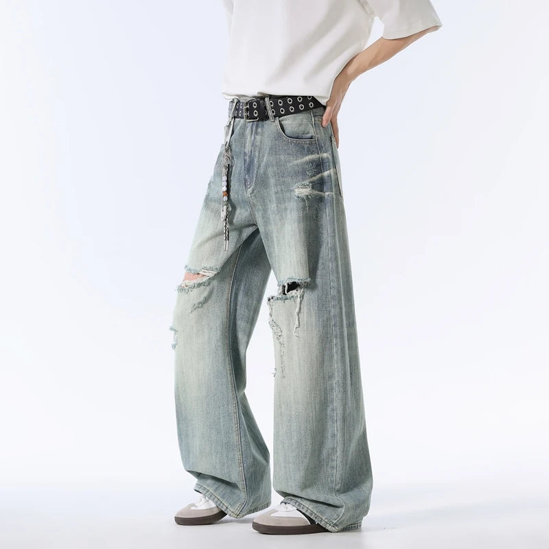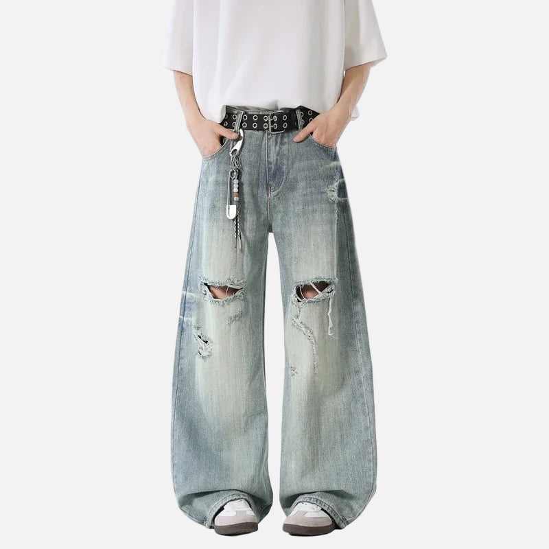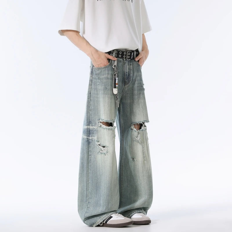 Streetwear Blue Baggy Ripped Wide Leg Jeans