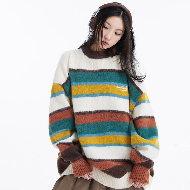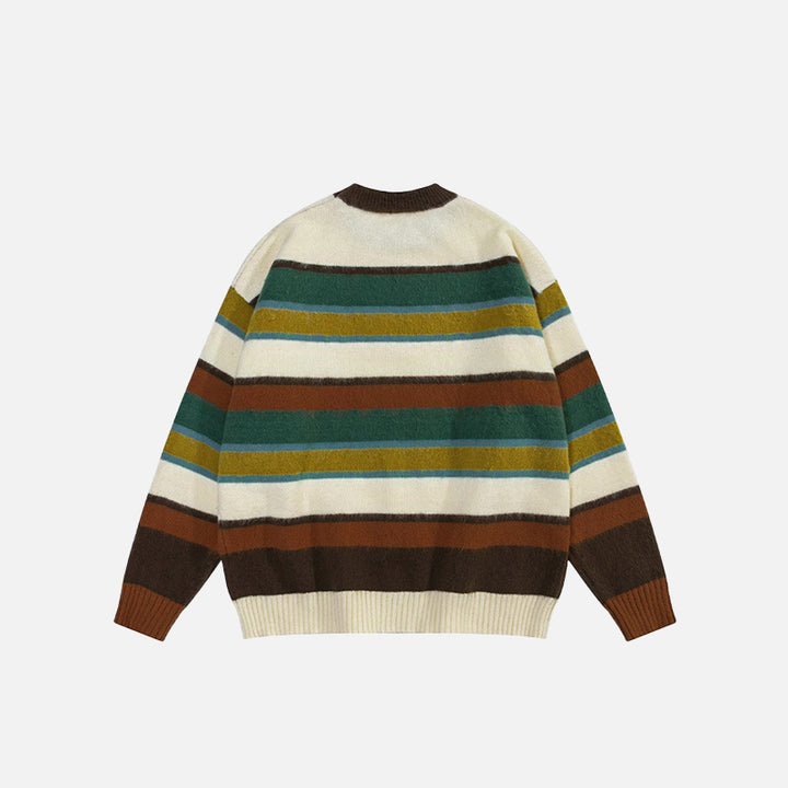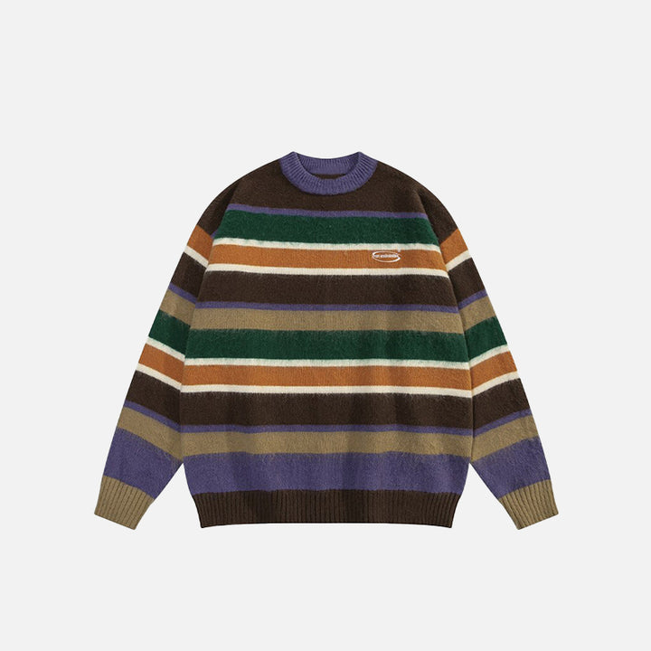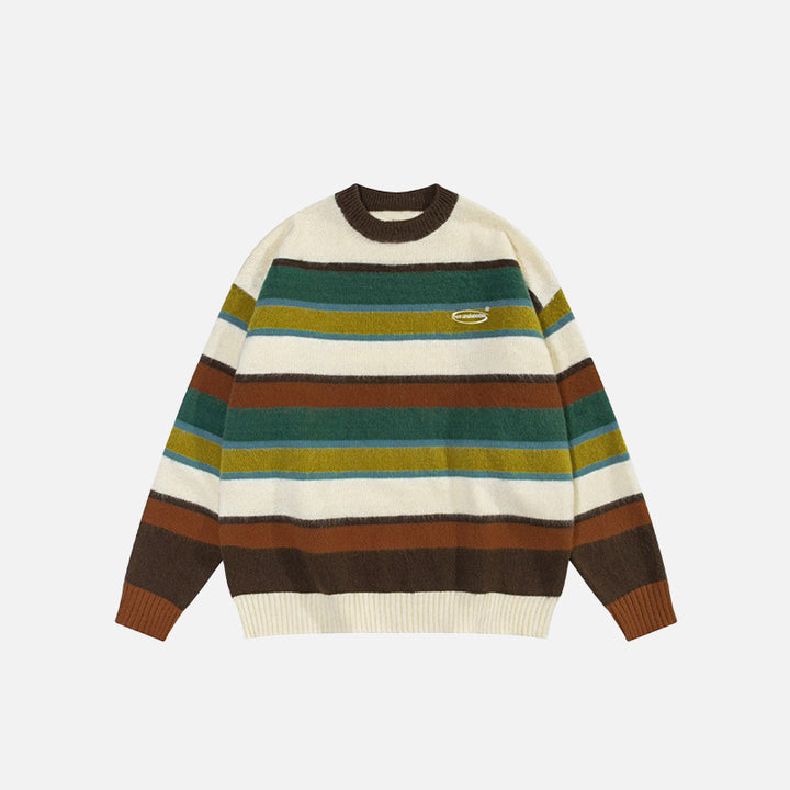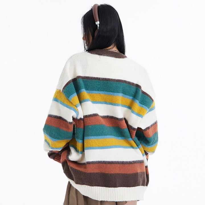 Crafted from the finest polyester and cotton, this O-Neck sweater boasts a classic striped pattern, added sophistication and timeless style. Its generous, oversized fit ensures effortless, all-day comfort.