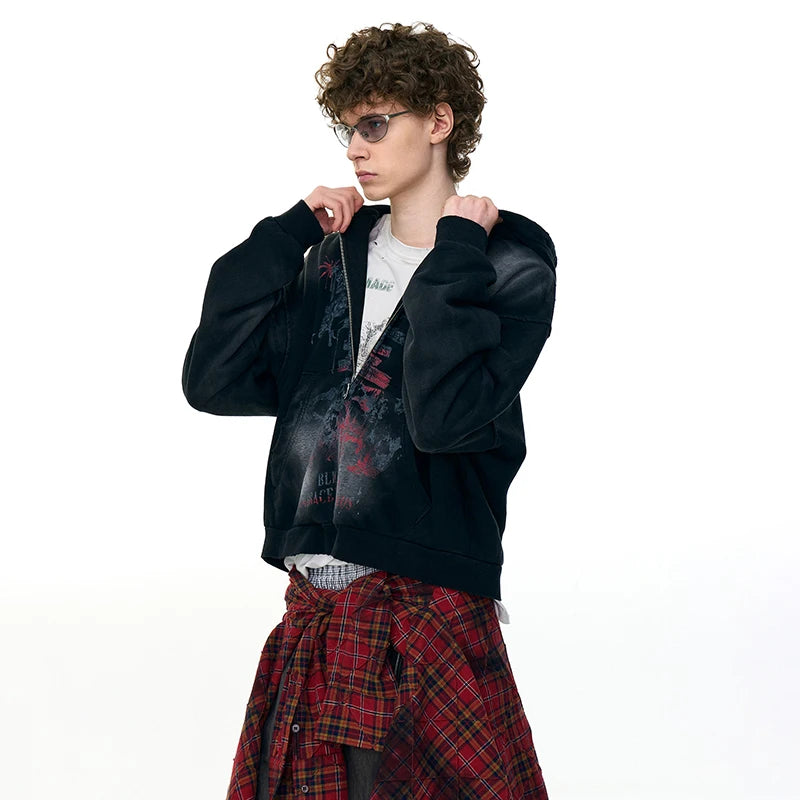 Stylish Gothic Tie-Dyed Hooded Sweatshirt