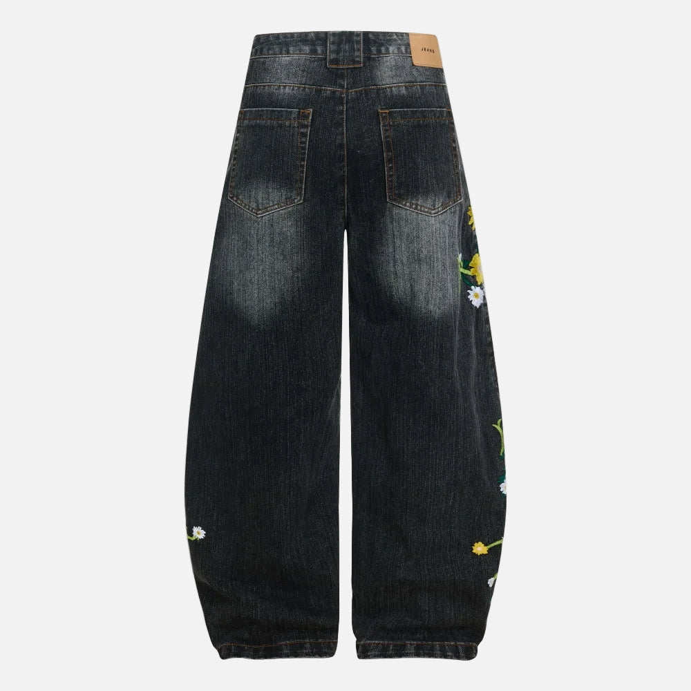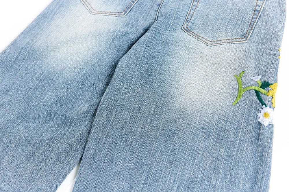 Trendy Distressed Flower Banana Wide Leg Jeans