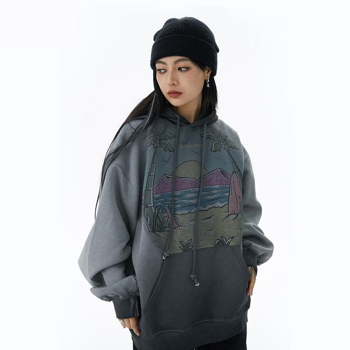 Vintage Beach Graphic Oversized Hoodie