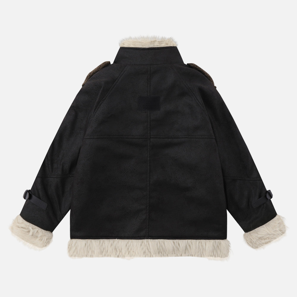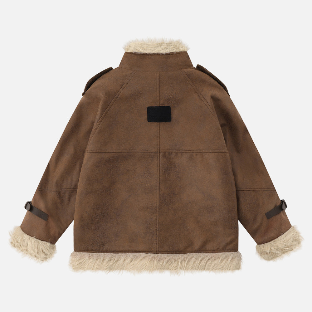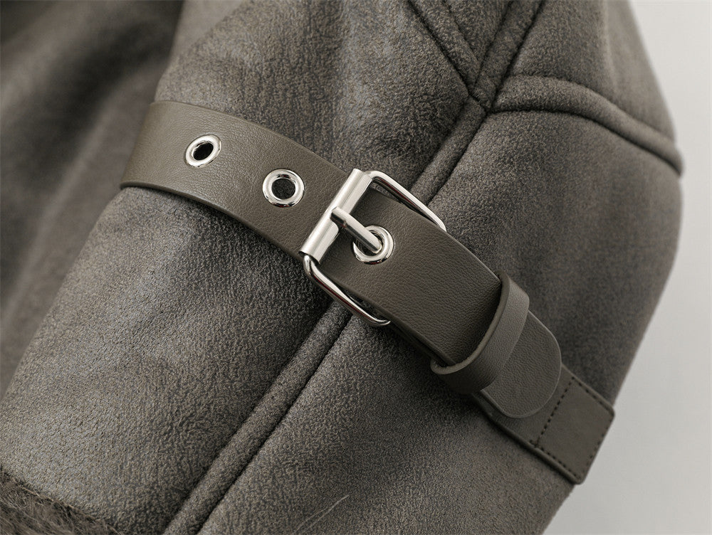 Winter Multi Pocket Thick High Neck Leather Jacket