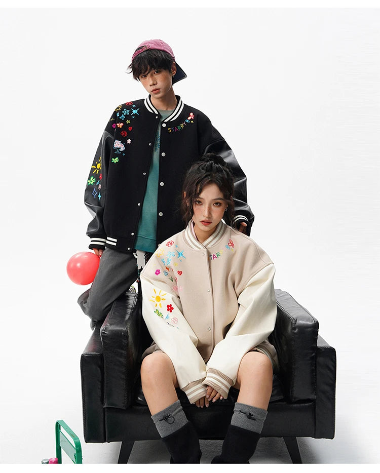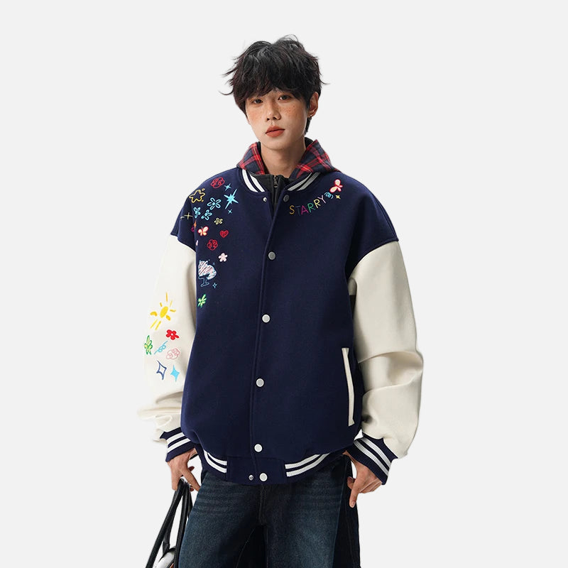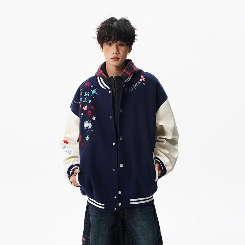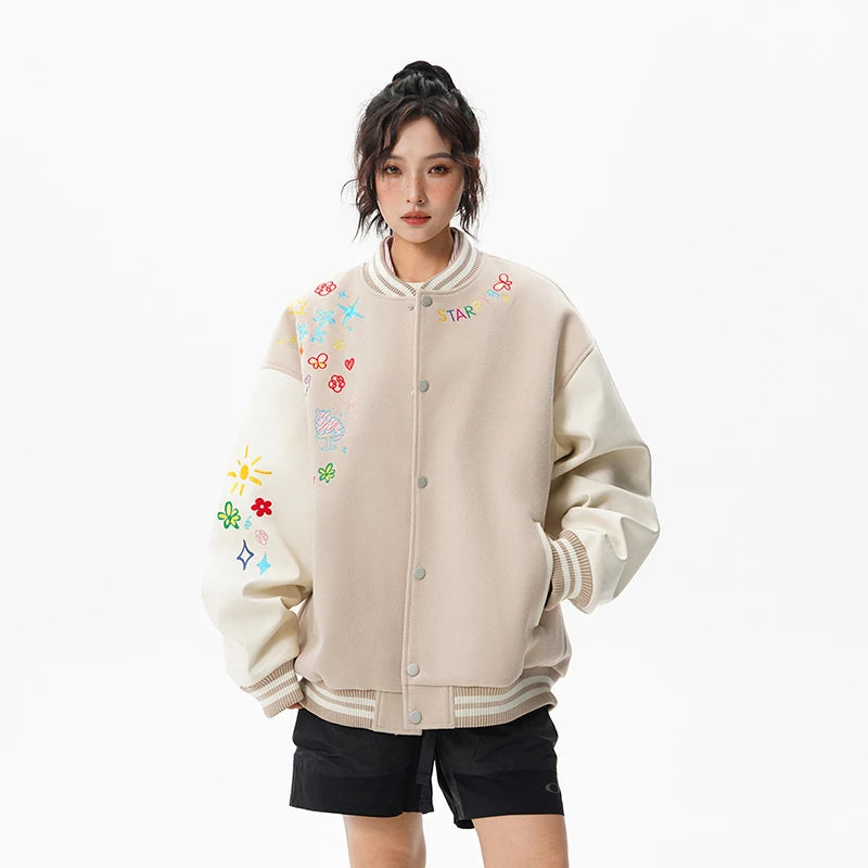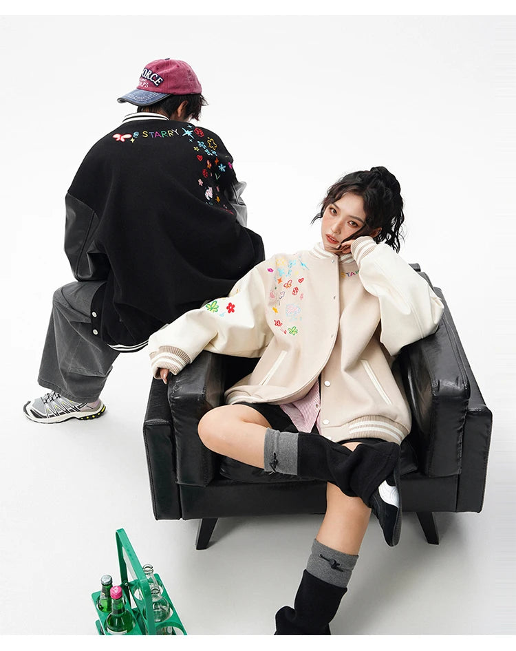 Y2K Cozy Embroidered Baseball Varsity Jacket