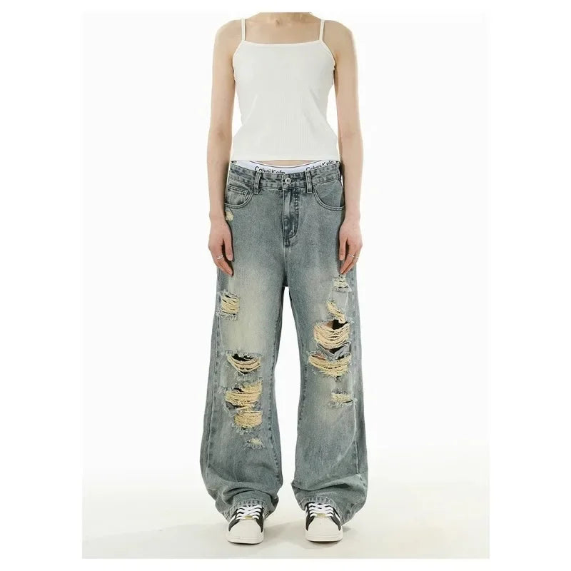 Y2K Durable Distressed Denim Flare Jeans