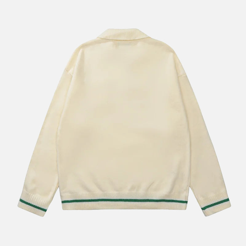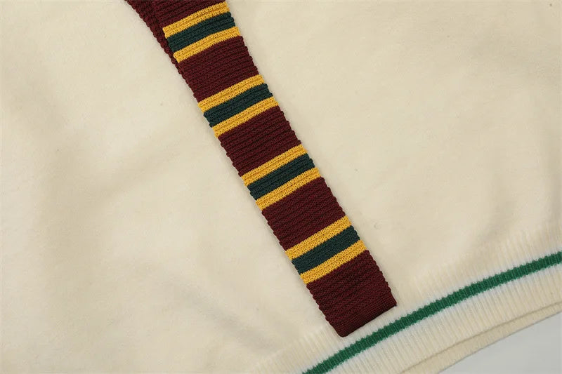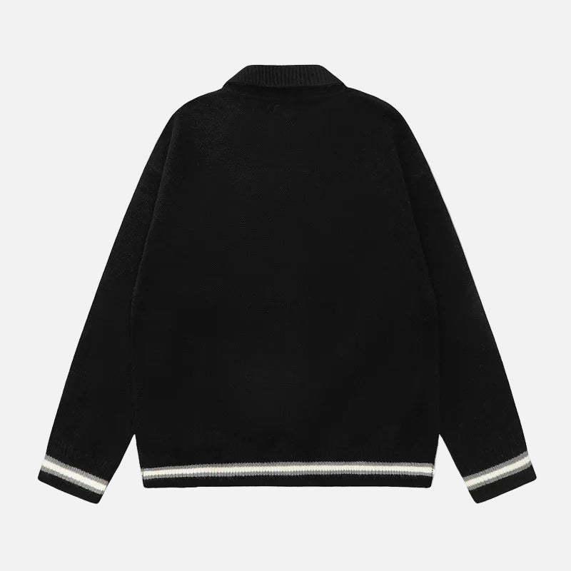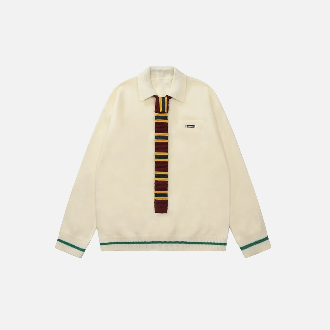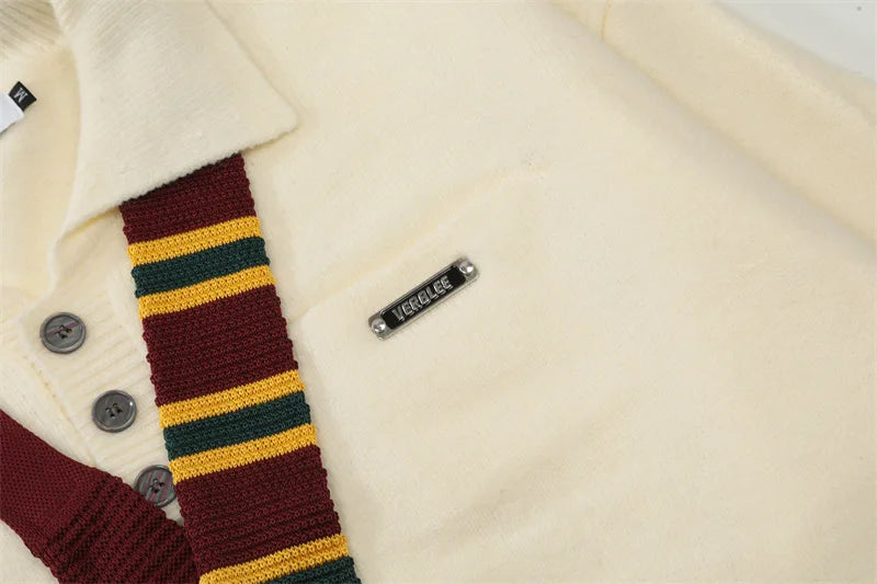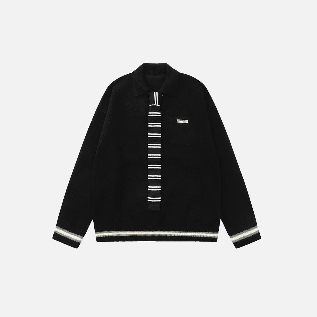 Y2K Preppy Striped Tie Collar Knit Sweater